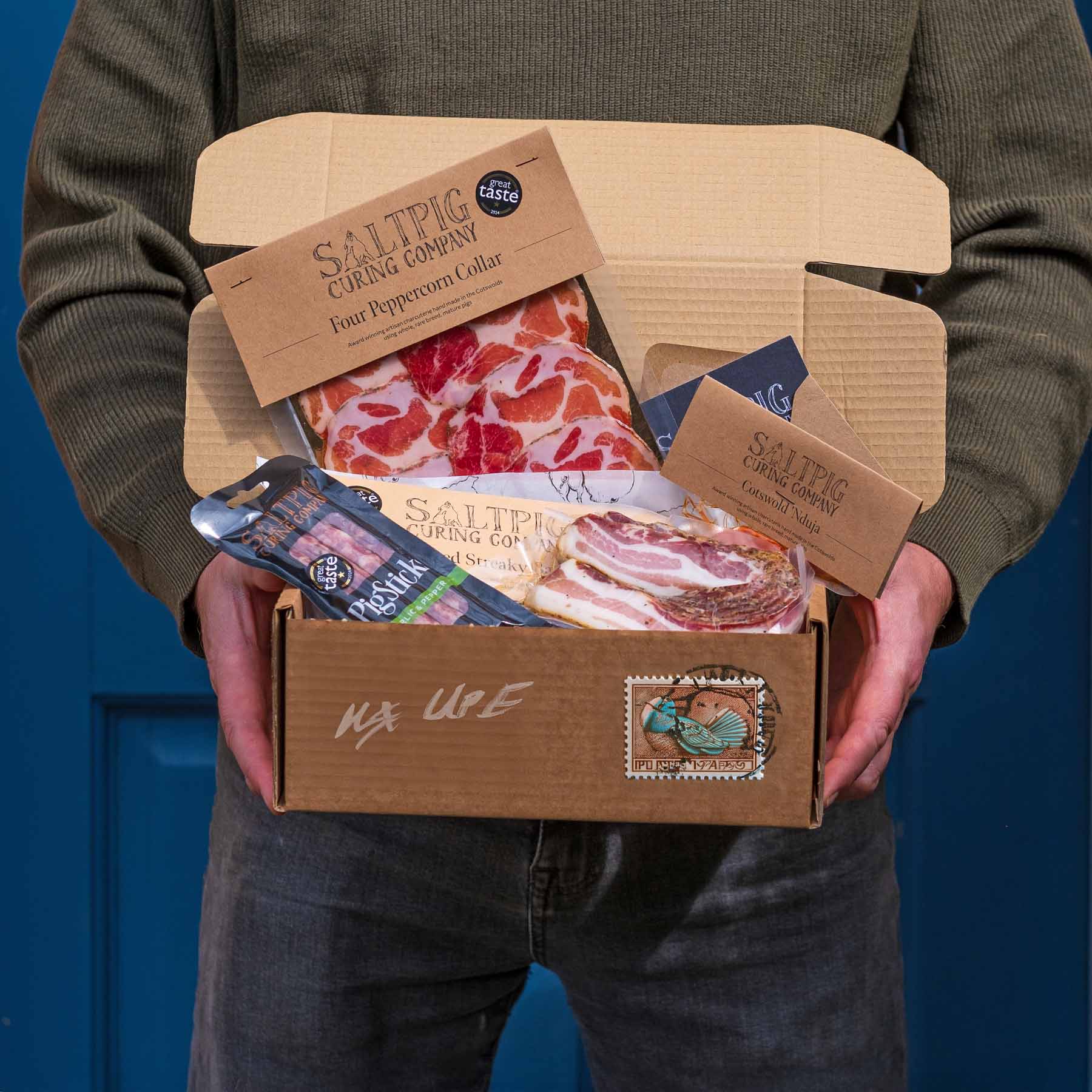Our Bacon & Friends Box delivers to your door month after month. Available for 3, 6 or 12 months and gives you 2 packs of bacon and 3 other products delivered each month, all with a one-time payment! No recurring billing - just pay upfront and enjoy delicious deliveries each month for you chosen duration.