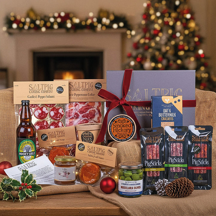 A fabulous Christmas gift for your foodie friends and family. This artisan hamper contains our award-winning cured meats and salamis along with a selection of delicious snacking accompaniments.